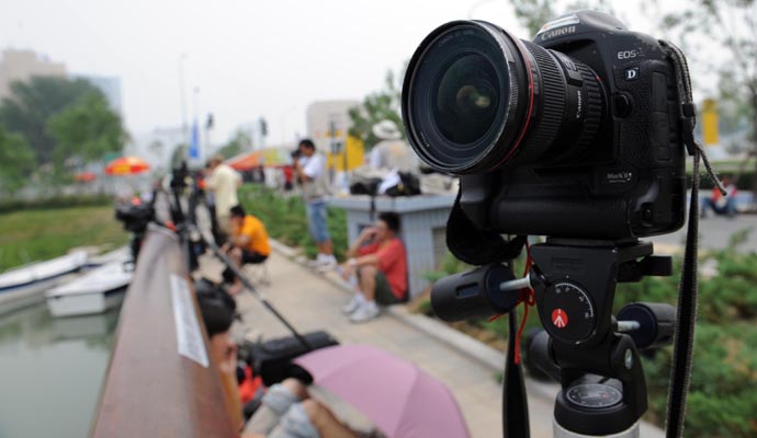 8月8日,眾多攝影記者提前在國(guó)家體育場(chǎng)——“鳥巢”南側(cè)架好攝影器材,為晚上的開幕式做準(zhǔn)備。此刻距北京奧運(yùn)會(huì)開幕還有不到6個(gè)小時(shí)。