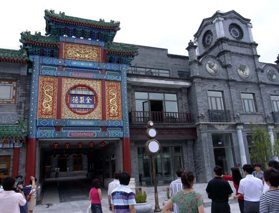 “大柵欄”是北京最古老、最著名且又別具一格的古老街市和繁華的商業(yè)鬧市區(qū),保存著大量原汁原味的古老建筑。有許多名揚(yáng)中外的老字號:如明朝嘉靖九年開業(yè)的六必居,為京城醬園之首。清代康熙八年開業(yè)的同仁堂藥店。還有嘉慶16年開業(yè)的馬聚源帽店,咸豐13年開業(yè)的內(nèi)升聯(lián)鞋店,光緒19年開業(yè)的瑞蚨祥綢緞皮貨店,都是本行業(yè)中的龍頭。 在北京南中軸線上,前門大街距今已有570余年的歷史,素有“天街”之稱。修繕后的新前門大街突出了現(xiàn)代商業(yè)功能和古都風(fēng)貌相結(jié)合的特點。目前,除原本大街上“土生土長”的月盛齋、一條龍、慶林春茶莊、全聚德等13家“老字號”全部回遷外,包括蘋果電腦、星巴克、勞力士、阿迪達(dá)斯等在內(nèi)的20多家國際知名品牌也已簽約,確定進(jìn)駐。 新前門大街已經(jīng)掛上昨日鳥籠、銅鼓、冰糖葫蘆等具有老北京特色的燈。改造后的前門大街換成了青白石路面,再現(xiàn)昔日御道風(fēng)采,留存在老北京人記憶中的有軌電車(鐺鐺車)、五牌樓等明清風(fēng)景也重新展現(xiàn)在人們的眼前。