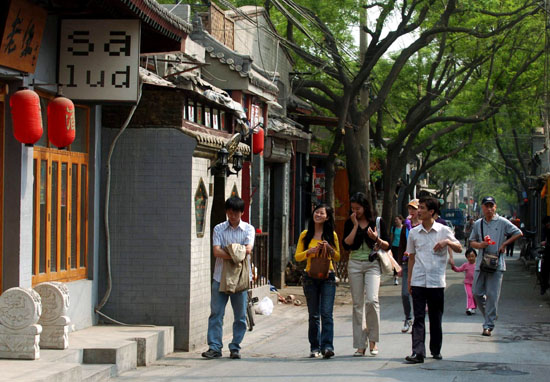 南鑼鼓巷是北京東城區(qū)的一條很古老的街道,仍保持著元大都街巷、胡同的規(guī)劃。它始建于元朝,南北長約800米,東西各有8條對稱的胡同,整齊地排列在兩側(cè),從外形看猶如一條蜈蚣,所以又名“蜈蚣街”! 推開一扇厚厚的黑漆木門,一個通透敞亮的老北京四合院赫然映入眼簾,談笑聲、低語聲、鳥鳴聲依稀從涼棚上纏繞的葡萄藤蔓間飄出來……在南鑼鼓巷這條不足800米的狹長小巷中,布滿了這種低門窄戶而別有洞天的小酒吧,宛如這條街巷的整體感覺:靜謐、內(nèi)斂。 而酒吧并不僅僅是南鑼鼓巷的全部,懷舊而親切的商業(yè)符號在這里隨處可見:上世紀(jì)八十年代的副食店、出售瓷瓶酸奶的小鋪子、干凈整潔價格公道的青年旅社……無論對想要停步小憩的游人還是渴望慵懶打發(fā)整個下午的過客來說,這樣輕松閑適的氛圍無疑都再合適不過了。