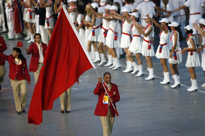 8月8日晚8時(shí),第29屆夏季奧林匹克運(yùn)動(dòng)會(huì)在國(guó)家體育場(chǎng)——“鳥(niǎo)巢”隆重開(kāi)幕。這是摩洛哥代表團(tuán)在開(kāi)幕式上入場(chǎng)。