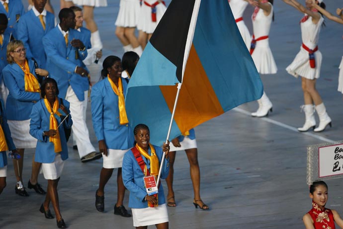 >> 巴哈馬代表團(tuán)在開幕式上入場(chǎng)