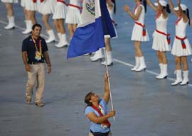 8月8日晚8時,第29屆夏季奧林匹克運動會在國家體育場——“鳥巢”隆重開幕。這是各國代表團在開幕式上入場。