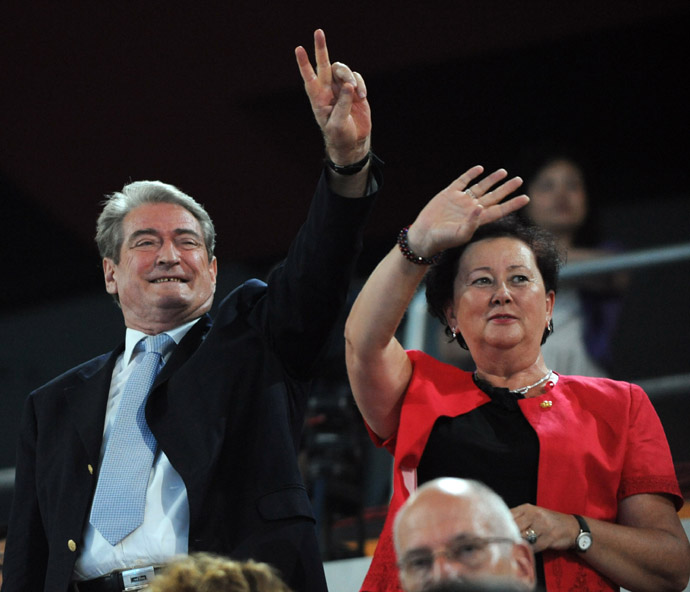 8月8日,阿爾巴尼亞總理貝里沙和夫人在北京奧運會開幕式上向運動員致意。