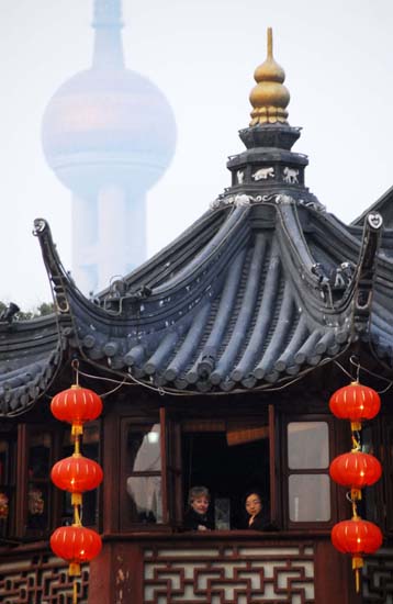 游客在豫園內(nèi)觀賞夜景。本報記者:裴鑫