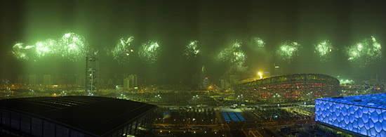 | 奧運(yùn)會開幕式上的焰火表演。新華社記者 徐家軍 陳凱 攝 |