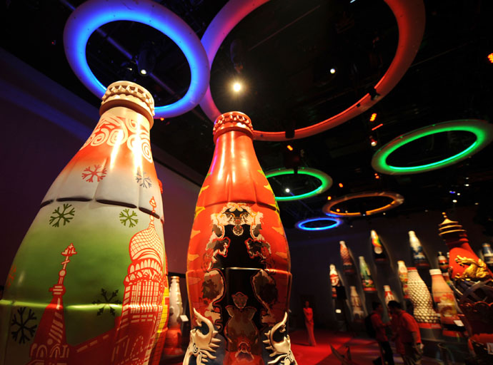 8月9日,在北京奧林匹克公園,來(lái)自全國(guó)各地的34個(gè)可口可樂藝術(shù)瓶向公眾展出,精美的“瓶體”藝術(shù)品展現(xiàn)中國(guó)傳統(tǒng)文化和各地民俗風(fēng)情,是奧運(yùn)與文化、商業(yè)、藝術(shù)的精巧結(jié)合。這是8月9日在奧林匹克公園拍攝的可口可樂藝術(shù)瓶。