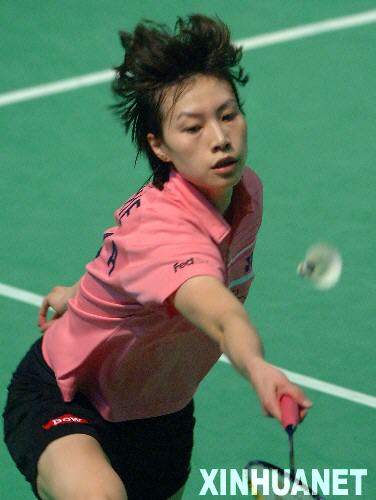 謝杏芳在2007香港羽毛球公開賽女單決賽中以2比0戰(zhàn)勝隊(duì)友朱琳,獲得冠軍。 新華社記者 公磊