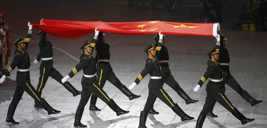 8月8日晚,北京奧運會主體育場。一個高大威武的軍人形象必將永遠定格在中國奧林匹克的史冊之上。在萬眾矚目之下,他先后親手將代表奧運會主辦國的五星紅旗、象征五大洲和全世界運動員在奧運會上相聚一堂的五環(huán)旗,冉冉升起在開幕式現(xiàn)場的上空。