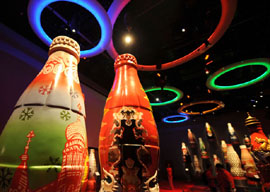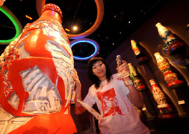 8月9日,在北京奧林匹克公園,來自全國各地的34個可口可樂藝術(shù)瓶向公眾展出,精美的“瓶體”藝術(shù)品展現(xiàn)中國傳統(tǒng)文化和各地民俗風(fēng)情,是奧運與文化、商業(yè)、藝術(shù)的精巧結(jié)合。