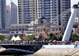 8月11日,青島奧林匹克主題公園向公眾開放。這個主題公園設(shè)立在奧帆中心西側(cè),游覽者在感受奧林匹克魅力的同時還可近距離觀看奧運會帆船比賽,為運動員們吶喊加油。