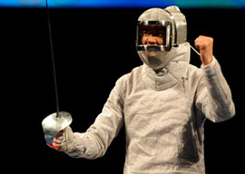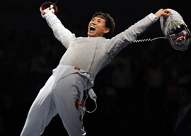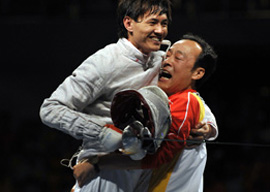 8月12日晚,中國選手仲滿在國家會議中心擊劍館舉行的北京奧運會男子佩劍個人決賽中戰(zhàn)勝法國選手尼古拉·洛佩,獲得冠軍。這是中國男子擊劍在奧運歷史上的第一金。