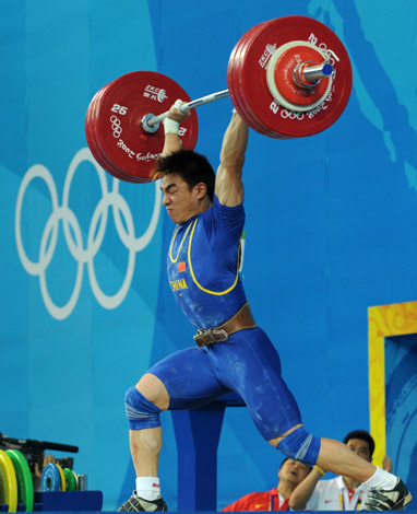 8月12日,中國運動員廖輝在比賽中。當(dāng)日,廖輝在北京奧運會舉重男子69公斤級決賽中以348公斤的總成績獲得金牌。