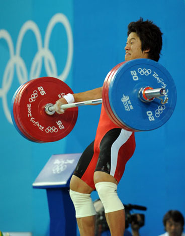 8月13日,韓國(guó)選手史載赫在比賽中。當(dāng)日,史載赫在北京奧運(yùn)會(huì)舉重男子77公斤級(jí)決賽中獲得金牌。