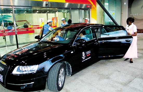 >> 夜幕下,一起大眾汽車將奧運(yùn)官員送抵運(yùn)動(dòng)場(chǎng)