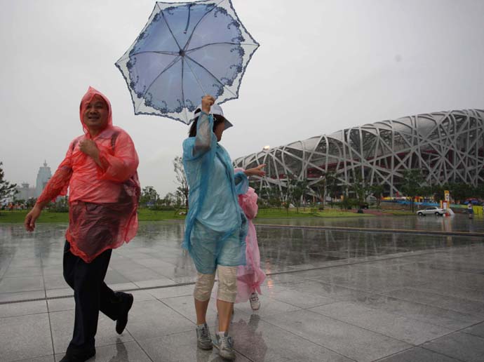 當(dāng)日,北京下起大雨,雨中的奧林匹克公園別有一番情趣。