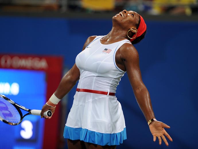 當(dāng)日,在北京奧運(yùn)會(huì)網(wǎng)球女單四分之一決賽中,俄羅斯選手杰緬季耶娃以2比1戰(zhàn)勝美國選手小威廉姆斯。