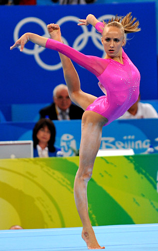 美國隊(duì)員柳金將她身材高挑、線條舒展、動(dòng)作穩(wěn)定的特點(diǎn)充分展現(xiàn)了出來,以總分63.325的成績獲得北京奧運(yùn)會(huì)體操女子個(gè)人全能金牌,這也是美國隊(duì)在北京奧運(yùn)會(huì)上獲得的首枚體操金牌。中國選手楊伊琳獲得銅牌。 柳金的隊(duì)友、2007年世錦賽個(gè)人全能冠軍肖恩·約翰遜最后時(shí)刻在自由體操中超越楊伊琳,獲得亞軍,成績?yōu)?2.725分。楊伊琳的總分為62.650分。 這也是18歲的柳金第一次獲得奧運(yùn)會(huì)冠軍,她幫助美國在奧運(yùn)會(huì)上蟬聯(lián)了這個(gè)項(xiàng)目的金牌。 經(jīng)過混合區(qū)時(shí),柳金說,到現(xiàn)在她還都沒想到已經(jīng)拿到金牌!案兄x我的父母,父親一直教導(dǎo)我,而母親則陪我度過最艱苦的時(shí)光”。 2007年世錦賽團(tuán)體和平衡木冠軍柳金是一名移民美國的俄羅斯裔運(yùn)動(dòng)員,她的教練就是她的父親。 今天的比賽在最后一刻才見分曉。最后一項(xiàng)比賽自由體操開始前,暫列第一的柳金僅領(lǐng)先第二名楊伊琳0.15分,領(lǐng)先第三名約翰遜0.6分。倒數(shù)第二個(gè)出場的柳金自由體操得到了15.525分,超過了楊伊琳15.000的得分,也讓落后的約翰遜難以追趕。 柳金今天的特點(diǎn)是穩(wěn)定性高,在順利完成她的弱項(xiàng)跳馬后,其他三個(gè)長項(xiàng)中她都拿到了高分,包括資格賽中曾出現(xiàn)重大失誤的高低杠。 第一次參加奧運(yùn)會(huì)的楊伊琳今天的表現(xiàn)非常不錯(cuò),她在高低杠中完成了與柳金一樣難度分同為7.7分的動(dòng)作,得分16.725分,超過了柳金。她自己并不擅長的平衡木和自由體操動(dòng)作也都高質(zhì)量完成,贏得教練與全場觀眾的稱贊。完成比賽后,楊伊琳向四個(gè)方向看臺(tái)的觀眾深深鞠了四個(gè)躬,表示感謝。 楊伊琳賽后對自己的表現(xiàn)表示滿意。教練劉群琳對她的評(píng)價(jià)則是“不畏強(qiáng)手,奮力拼搏,我非常滿意”! 不同于男子全能要進(jìn)行6個(gè)項(xiàng)目的較量,女子全能比賽項(xiàng)目只有4個(gè)。一個(gè)項(xiàng)目上出現(xiàn)失誤,靠其他項(xiàng)目追回來的可能性非常小。 中國另一個(gè)進(jìn)入決賽的選手江鈺源第一項(xiàng)跳馬出現(xiàn)失誤,落后不穩(wěn)坐到了墊子上,最后成績?yōu)?0.900分,名列第六。 銀牌得主約翰遜說:“我非常高興能拿到獎(jiǎng)牌,能參加奧運(yùn)會(huì)已經(jīng)很開心。今天沒有奪得金牌,我一點(diǎn)也不失望。我很為柳金驕傲,她非常努力,應(yīng)該拿到金牌。” 2000年悉尼奧運(yùn)會(huì)和2004年雅典奧運(yùn)會(huì)上,劉璇和張楠曾分別奪得全能的銅牌。 目前,中國體操隊(duì)在北京奧運(yùn)會(huì)上已奪得三枚金牌和一枚銅牌,位居各隊(duì)之首。