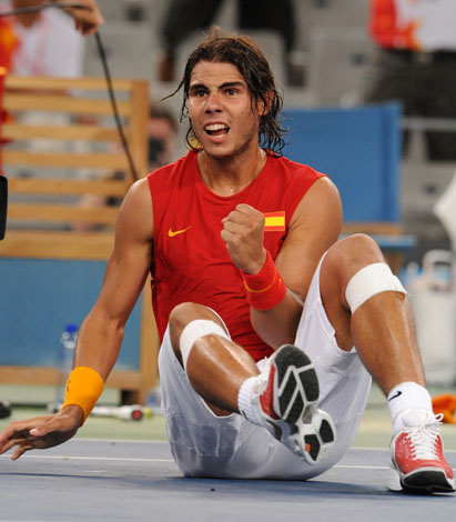 當日,在北京奧運會網(wǎng)球男單半決賽中,西班牙選手納達爾以2比1戰(zhàn)勝塞爾維亞選手德約科維奇。