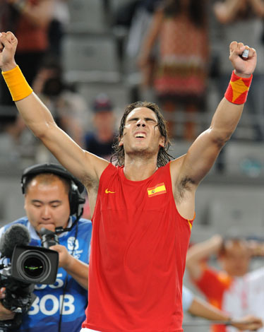 當(dāng)日,在北京奧運會網(wǎng)球男單半決賽中,西班牙選手納達爾以2比1戰(zhàn)勝塞爾維亞選手德約科維奇。