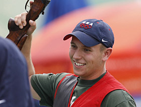 2006年,神奇小子突然從國際賽場上銷聲匿跡,原來他入伍了,成為美國陸軍射擊隊的一員。這一年,這個年輕的世界冠軍在軍隊的生活跟普通士兵沒什么兩樣。每天凌晨起床做俯臥撐,學(xué)著在街巷搜索敵軍,下午還得給老兵沖咖啡。 不過,在文森特看來,這是他人生的一個美妙轉(zhuǎn)折。“加入軍隊之后我學(xué)到了很多。決心、毅力、紀(jì)律性都比以前更強了,這對我的射擊生涯很有幫助。”盡管沒有出現(xiàn)在國際賽場上,但是他在軍隊系統(tǒng)和美國國內(nèi)卻參加了大小幾十場比賽。 在一年的正式服役之后,文森特轉(zhuǎn)為預(yù)備役軍人,時刻等待著軍隊的調(diào)遣,但是現(xiàn)在,在被派往伊拉克或者阿富汗之前,他的任務(wù)只是射擊。在美國陸軍射擊隊位于佐治亞州本寧堡的訓(xùn)練基地,他每天和另外3位世界級飛碟高手一起訓(xùn)練,還當(dāng)起了普通美軍士兵的教練。 “軍人的天職就是服從命令,現(xiàn)在軍隊命令我來打奧運會,所以我來了!闭f起這些話,這個還不太大的孩子一臉的嚴(yán)肅認(rèn)真,盡管他早已為美國隊贏得北京奧運會入場券,并且在選拔賽中勝出,獲得奧運參賽資格。 老教練伍德豪斯曾說,加入軍隊對美國射擊選手來說都有很大的好處,在那里,他們能鍛煉得身體更強健,心理更剛強,更重要的是,這些頂級槍手們一起訓(xùn)練,切磋之下技藝長進(jìn)很快。 “參軍之后,我的技術(shù)能力又提高了一個層次!蔽纳卣f。