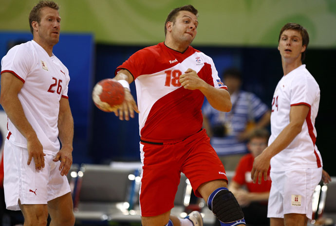 當(dāng)日,在北京奧運會手球男子預(yù)賽B組第24場的比賽中,冰島隊以最后4秒得到的七米球追平丹麥隊,戰(zhàn)成32比32。