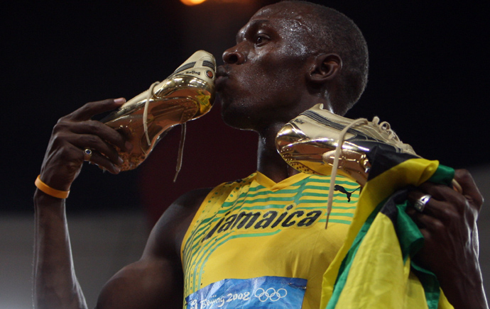 當(dāng)日,博爾特在國(guó)家體育場(chǎng)“鳥(niǎo)巢”進(jìn)行的北京奧運(yùn)會(huì)男子100米決賽中以9秒69的成績(jī)奪得金牌并打破9秒72的世界紀(jì)錄。