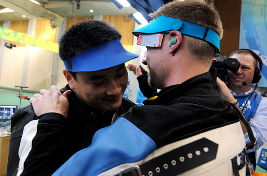 造化弄人。美國名將埃蒙斯竟然連續(xù)兩屆奧運會倒在最后一槍上。4.4環(huán)!在他射出這讓全世界觀眾再次目瞪口呆的成績后,50米步槍三姿金牌就像專屬中國人的大餡餅,迎面砸向33歲的江蘇老將邱健。 8月17日下午13時51分,北京奧運會射擊比賽還有一個人的最后一槍就將全部結(jié)束。此時其他參加男子50米步槍三姿的運動員都完成了比賽,中國隊邱健的成績最好,他利用最后一槍逆轉(zhuǎn)烏克蘭對手0.1環(huán),1272.5環(huán)的成績足以保證他獲得一塊銀牌。 那個還沒有完成比賽的是美國人馬修·埃蒙斯,他最后一槍前的成績是1265.9環(huán),只要6.7環(huán),一個步槍射擊中的業(yè)余水平,金牌就屬于美國人。 埃蒙斯舉槍、瞄準(zhǔn)、擊發(fā)。 4.4環(huán)!在全場觀眾不知所措的驚嘆中,時光一下子倒轉(zhuǎn)四年,回到了2004年8月22日的雅典馬可波羅射擊場。 當(dāng)時的三姿比賽也進(jìn)行到了最后一槍,2號靶位的埃蒙斯同樣最后一個擊發(fā)。他只要得到不低于7.1環(huán)的成績就能奪冠,但最后一聲槍響后,子彈竟然飛到了3號靶子上。在美國人出現(xiàn)脫靶這種超級失誤后,金牌屬于中國隊的賈占波。 四年一個輪回,再次站在奧運會決賽場上的埃蒙斯萬萬沒想到,噩夢就像幽靈一樣,從雅典追到了北京。 本屆奧運會首金獲得者卡捷琳娜第一時間來到了丈夫身邊,此時的馬修只有將頭深埋在妻子的懷里才能得到些許安慰。 美國人賽后說:“當(dāng)時我瞄準(zhǔn)的動作很正常,從上到下,但還沒有走到位的時候扳機就響了。我也搞不清楚是怎么回事,這可能就是命運吧!不過一切都過去了,我現(xiàn)在可以喝啤酒去了! 一直在場下注視丈夫比賽的卡捷琳娜說:“其實他決賽前九槍打得很好,又出現(xiàn)這種事情,可能是還不到他得的時候! 延續(xù)了賈占波在雅典的幸運后,邱健異常激動,他說:“為祖國贏得榮譽,我確實非常高興。這塊金牌是中國射擊隊所有人共同努力的結(jié)果! 烏克蘭隊的蘇霍魯科夫獲得銀牌,斯洛文尼亞的德貝維奇拿到銅牌,而埃蒙斯的最終成績只是第四名。中國隊的雅典“幸運兒”賈占波也參加了比賽,但他身上的運氣似乎都給了隊友邱健,資格賽成績1163環(huán)的老賈沒能進(jìn)入決賽。
