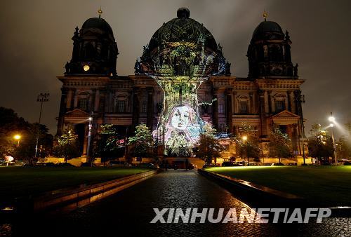 8月15日,德國(guó)柏林大教堂被燈光照耀得熠熠生輝。在燈光藝術(shù)節(jié)上,歐洲藝術(shù)家們用彩燈裝飾教堂,吸引了許多觀眾。新華社/法新
