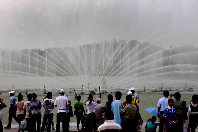 8月17日,人們?cè)趭W林匹克森林公園欣賞音樂(lè)噴泉表演。當(dāng)日,4萬(wàn)觀眾來(lái)到北京奧林匹克公園游覽。占地1000多公頃的北京奧林匹克公園包括奧林匹克森林公園、景觀大道、國(guó)家體育館、國(guó)家體育場(chǎng)、國(guó)家游泳中心和運(yùn)動(dòng)員村等設(shè)施。