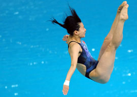 8月17日,北京奧運會跳水比賽在國家游泳中心——“水立方”繼續(xù)進行,郭晶晶在女子3米跳板決賽中以415.35分的總成績獲得冠軍。