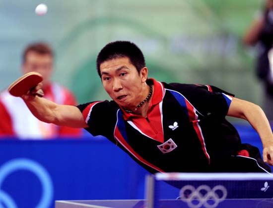 “我很高興我們得了團體銅牌,也希望我在后面的單打中順利拿到金牌”,韓國名將、雅典奧運會乒乓球男單冠軍柳承敏說。“雖然也許不太容易,王皓現(xiàn)在看起來狀態(tài)不錯。” 奪取銅牌之役,似乎令柳承敏找回了自信。他不再像前一天銅牌資格賽中那樣低頭躲開記者,而是開心地停留在混合區(qū)表達他的喜悅。 柳承敏是典型的大賽興奮型選手,這也是中國隊一直對柳承敏嚴(yán)加提防的重要原因。人們一直忘不了2004年雅典奧運會,看起來實力稍遜的柳承敏超水平發(fā)揮,一舉戰(zhàn)勝王皓奪得奧運會男單冠軍。 這次柳承敏還會再次上演“雅典神話”嗎? 經(jīng)歷辭職再回歸風(fēng)波的韓國隊主教練劉南奎,坦率地對柳承敏的單打局勢表示擔(dān)心。從開賽以來的表現(xiàn)看,柳承敏表現(xiàn)不佳,在與中國香港隊的銅牌資格賽中,柳承敏以2:3輸給李靜,這也是當(dāng)日韓國隊唯一的輸局。更早以前的小組賽上,柳承敏連續(xù)輸給巴西選手蒙泰羅和中華臺北隊的莊智淵。 團體之后,單打開始。按照目前的抽簽結(jié)果,如果一切順利,柳承敏和王皓這一對“冤家”將等不到半決賽就會再次遭遇。 還是那個問題,奇跡還會發(fā)生嗎?雖然兩者狀態(tài)與四年前已不可同日而語,團體賽半決賽中更是輸給了王皓。但不到最后一刻,誰也不敢輕言勝負(fù)。 “單打比賽我會竭盡全力”,柳承敏說。