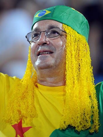 8月18日,巴西球迷。當(dāng)日,北京奧運(yùn)會沙灘排球1男子/4決賽結(jié)束。