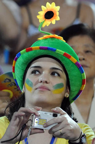 8月18日,巴西球迷。當日,北京奧運會沙灘排球1男子/4決賽結(jié)束。