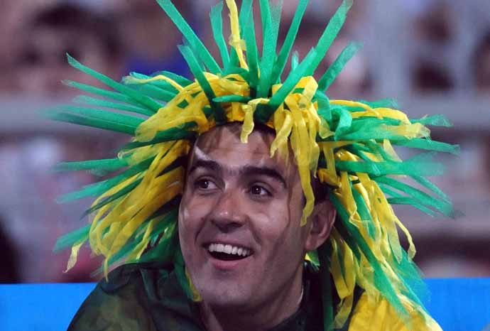 8月18日,巴西球迷。當(dāng)日,北京奧運(yùn)會(huì)沙灘排球1男子/4決賽結(jié)束。