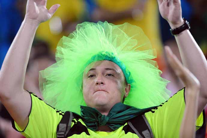 8月18日,巴西球迷。當日,北京奧運會沙灘排球1男子/4決賽結(jié)束。