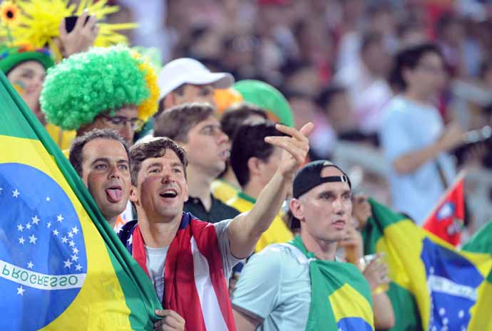 8月18日,巴西球迷。當(dāng)日,北京奧運(yùn)會(huì)沙灘排球1男子/4決賽結(jié)束。