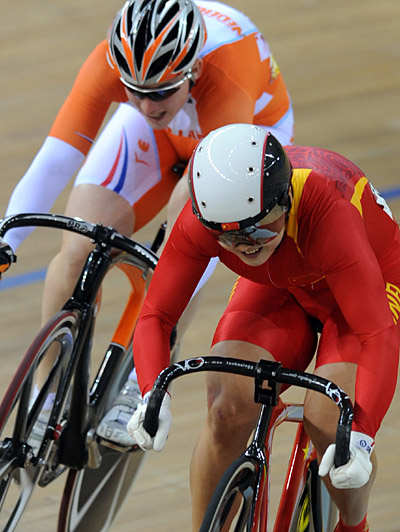 一團紅色火球與一團橙色火球,挾裹著全場觀眾陣陣驚雷般的吶喊聲,以電光火石之速,沖向終點線。50米,40米,30米,20米,10米,沖刺。郭爽贏了!不過,她贏的是銅牌。 盡管被寄予很大希望的郭爽沖金未成,但剛賽完的她在繞場騎行時,全場仍然一片歡呼,觀眾打出“郭爽真爽”的紅色橫幅為她慶祝勝利。 本來她應(yīng)該可以力爭金牌。在先前的半決賽上,郭爽在前兩輪與上屆奧運會季軍安·米亞雷斯戰(zhàn)平。在關(guān)鍵的第三輪,這位內(nèi)蒙古姑娘又一次發(fā)威,以非常微弱的優(yōu)勢先于米亞雷斯沖過終點線。不幸的是,她因侵入對手車道犯規(guī)而被降級到季軍爭奪戰(zhàn)。 “奪得銅牌我感到非常高興和滿意,這證明我今后有更大的發(fā)展空間,”22歲的郭爽并沒有覺得銅牌代表遺憾。 但64歲高齡的法國教練丹·莫雷龍卻表示出非常遺憾:“盡管英國選手實力強勁,但郭爽完全可以沖擊金牌,銀牌對她猶如探囊取物,一枚銅牌實在太可惜了!痹鴰С鲞B續(xù)四次世錦賽冠軍、連續(xù)兩屆奧運會冠軍費·巴朗熱的莫雷龍在退休前沒能把郭爽帶成奧運會冠軍。 1986年2月26日,郭爽出生在郭靖曾經(jīng)彎弓射大雕的大草原。13歲那年,她雙腳踏上了自行車運動生涯。2002年,她被派往瑞士的世界自行車中心學(xué)習(xí),主攻女子爭先賽,師從馬涅教練,被馬涅教練贊為“聰明、天賦好、領(lǐng)悟力強、非常勤奮,是他最好的學(xué)生”。此時,她在世界級舞臺上已經(jīng)嶄露頭角,脖子上已經(jīng)掛了好幾枚亮燦燦的金牌。據(jù)統(tǒng)計,在2005年之前,小郭爽連續(xù)6次獲得世界自行車賽女子爭先賽青少年組冠軍。