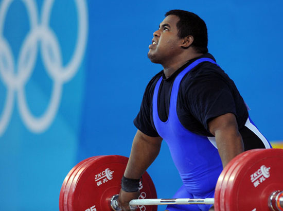 8月19日,德特納莫在北京奧運(yùn)會舉重男子105公斤以上級B組比賽中。