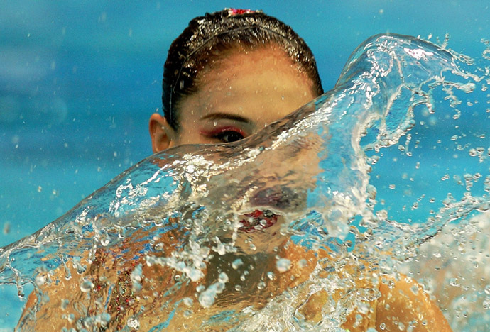 8月19日,朝鮮選手在比賽中,她們在花樣游泳雙人項目比賽中以總成績86.501分名列第十六,無緣決賽。當日,北京奧運會花樣游泳比賽在國家游泳中心——“水立方”繼續(xù)進行。