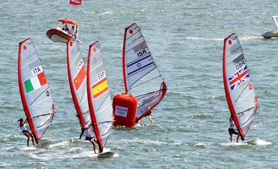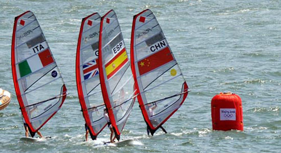 帆板比賽共計(jì)11輪比賽,分前十輪系列賽和最后一輪獎(jiǎng)牌輪。前十輪比賽的成績(jī)?nèi)サ粢粋(gè)最差成績(jī)后排名前十位的選手進(jìn)入最后的獎(jiǎng)牌輪。中國(guó)選手殷劍在前十輪系列賽后位居第一,領(lǐng)先第二名上屆奧運(yùn)會(huì)季軍、意大利選手森西尼5分。殷劍在前3輪的比賽中都是遙遙領(lǐng)先其他選手,獲得了第一的名次。之后她的成績(jī)有些起伏,連續(xù)獲得了兩個(gè)第8。好在最后一輪系列賽中,殷劍發(fā)揮出色,又獲得了一個(gè)第一,超越意大利選手森西尼躍居榜首。