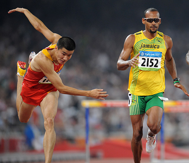 8月20日,中國選手史冬鵬(左)在男子110米欄半決賽中。史冬鵬名列小組第五名,無緣決賽。當(dāng)日,北京奧運會田徑比賽在國家體育場“鳥巢”繼續(xù)進行。