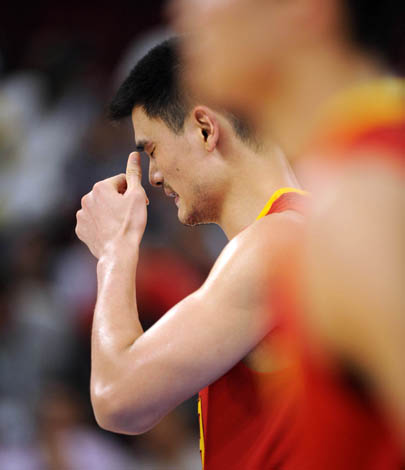 8月20日,中國隊(duì)隊(duì)員姚明在比賽中。