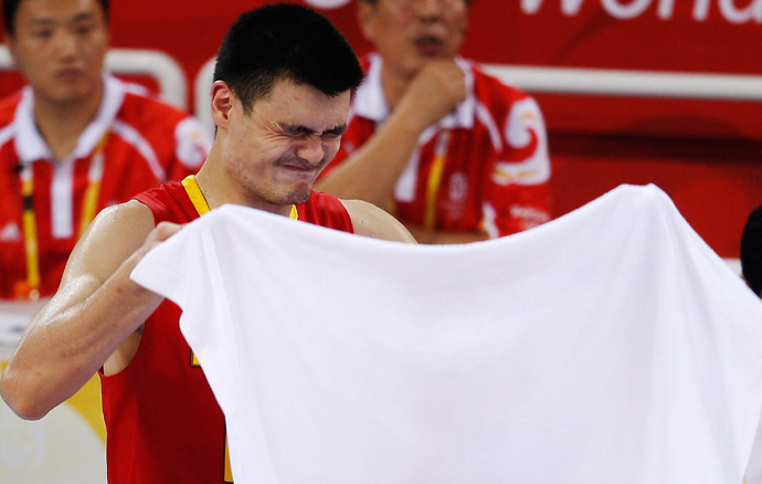 中國隊(duì)隊(duì)員姚明在比賽后的表情(8月20日攝)。