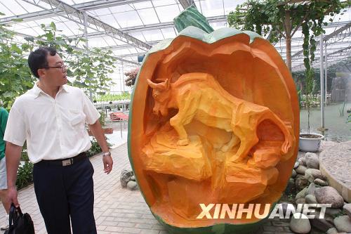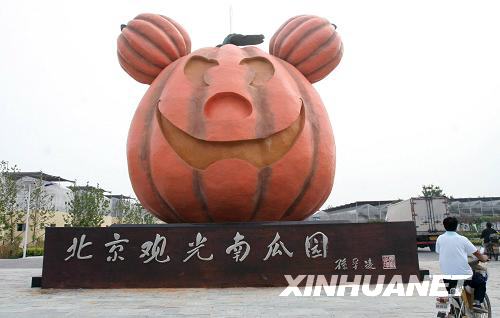8月20日,在北京觀光南瓜園拍攝的卡通造型南瓜。