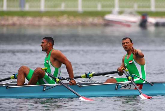 在男子雙人雙槳賽艇預(yù)賽中,來自伊拉克的運(yùn)動(dòng)員成績墊了底。可是,對于這個(gè)動(dòng)蕩不安的國家而言,參與就是莫大的勝利。