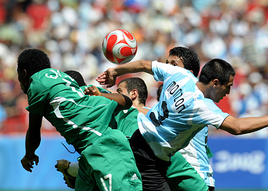 23日的鳥巢迎來了兩只雄鷹的對決:潘帕斯雄鷹阿根廷隊與非洲之鷹尼日利亞隊在北京奧運會男足決賽中相遇。在似火驕陽下鏖戰(zhàn)90分鐘之后,衛(wèi)冕冠軍阿根廷隊最終憑借迪·瑪利亞的一記輕巧吊射敲開勝利之門,以1:0擊敗對手奪冠。 這一勝利不僅幫助阿根廷隊成功復(fù)仇亞特蘭大奧運會決賽最后一刻被尼日利亞隊入球擊敗之仇,同時實現(xiàn)了他們的衛(wèi)冕之夢,而且也幫助阿根廷在北京奧運會上繼場地自行車項目之后奪得第二金。 比賽在正午12點鳴哨。擁有梅西、阿奎羅與里克爾梅這前場三叉戟的阿根廷隊自比賽開始后便頻頻利用短傳滲透不斷發(fā)起進攻,但對手在禁區(qū)前沿密集的防守成為阿根廷人推進中無法逾越的屏障。反而是尼日利亞隊的幾次反擊打得有聲有色,幾腳遠射也頗見功力。焦灼的比賽在正午的驕陽下進行了30分鐘后,雙方人馬勞頓,來自匈牙利的主裁維克托也見機行事,默許雙方球員集體來到場邊飲水解渴。此后的15分鐘內(nèi),雙方都無破門良機,互交白卷。 阿根廷隊在下半場的比賽中戰(zhàn)術(shù)上出現(xiàn)了一定的變化,隊形有所收縮,防反意圖明顯。這一戰(zhàn)術(shù)在58分鐘時獲得成效:效力于葡萄牙本菲卡隊的瑪利亞在中線附近接梅西后場傳球時,已經(jīng)撕破了對方前壓的后衛(wèi)線,之后他一路狂奔近20米,直到面前出現(xiàn)沖上前來的對方門將,他隨即起腳輕巧吊射,皮球在對方門線前落地彈起飛入網(wǎng)窩。 大約70分鐘時,場上再度出現(xiàn)全體球員暫停喝水的有趣一幕。此后,尼日利亞隊集體壓上,不斷在阿根廷隊門前制造殺機,尤其以71分鐘時禁區(qū)線上的遠射和84分鐘時近門柱的捅射威脅最大。但阿根廷人沒有再給對手以重現(xiàn)歷史的機會,1:0的比分保持到了終場。 比賽臨近結(jié)束,梅西被替換下場,獲得了單獨享受全場8萬9千余名球迷歡呼的榮耀。而當(dāng)現(xiàn)場屏幕出現(xiàn)看臺上觀戰(zhàn)的馬拉多納時,全場觀眾再度給予了熱烈的呼喊。 奪冠后的阿根廷隊興奮異常,在頒獎儀式后久久地在鳥巢里跳躍著歡慶勝利。而尼日利亞隊主帥亞亞落寞地說,“對于這樣的結(jié)果我感到非常失望,我們今天踢得非常好,只是沒有取得進球而已,但比賽比的就是進球!