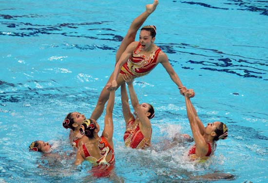 中國(guó)“美人魚”終于登上奧運(yùn)會(huì)領(lǐng)獎(jiǎng)臺(tái),實(shí)現(xiàn)了中國(guó)花樣游泳自1988年首次參加奧運(yùn)會(huì)以來(lái)的重大突破!在23日下午舉行的北京奧運(yùn)會(huì)花樣游泳集體項(xiàng)目比賽中,她們完美演繹了一曲震撼人心的《黃河》,最終以97.334分的總成績(jī)獲得一枚寶貴的銅牌。 中國(guó)姑娘在昨天的集體技術(shù)自選動(dòng)作比賽后暫居第三。當(dāng)天的自由自選動(dòng)作比賽中,中國(guó)隊(duì)第五個(gè)出場(chǎng),表現(xiàn)主題為中國(guó)龍,背景音樂(lè)則是大氣磅礴的《黃河》,還融入了民歌《茉莉花》等元素。 時(shí)而如鮮花綻放,時(shí)而如蛟龍出海,時(shí)而如波浪翻滾,中國(guó)“美人魚”的完美表演獲得了觀眾的熱烈掌聲,也得到了裁判的認(rèn)可。最終,中國(guó)隊(duì)的自由自選動(dòng)作得分為48.750分,以總成績(jī)?yōu)?7.334分暫居第一。 隨后出場(chǎng)的日本隊(duì)也表現(xiàn)了龍的主題,但整體動(dòng)作缺乏新意,她們只得到47.167分,總成績(jī)?yōu)?5.334分,與美國(guó)隊(duì)并列,排在中國(guó)和加拿大隊(duì)之后。 “水立方”立即傳出熱烈的歡呼聲,中國(guó)姑娘知道自己戰(zhàn)勝了實(shí)力最為接近的日本隊(duì),她們將首次登上奧運(yùn)會(huì)的領(lǐng)獎(jiǎng)臺(tái)。 最后兩個(gè)出場(chǎng)的分別是實(shí)力強(qiáng)大的西班牙隊(duì)和俄羅斯隊(duì)。俄羅斯隊(duì)是連續(xù)5屆世錦賽冠軍,同時(shí)還在悉尼、雅典兩屆奧運(yùn)會(huì)上包攬了雙人和集體金牌,在20日結(jié)束的北京奧運(yùn)會(huì)雙人項(xiàng)目上,她們已經(jīng)把金牌收入囊中。 最終,裁判對(duì)俄羅斯的表現(xiàn)給出了8個(gè)滿分10分,她們的自由自選動(dòng)作得分為滿分50分,從而以99.500分的總成績(jī)?cè)俅涡l(wèi)冕集體項(xiàng)目冠軍,這也是她們連續(xù)三屆奧運(yùn)會(huì)包攬花樣游泳金牌。西班牙隊(duì)是雅典奧運(yùn)會(huì)兩個(gè)項(xiàng)目的第四名,她們最終獲得集體項(xiàng)目銀牌,這也是她們?cè)诒本⿰W運(yùn)會(huì)上獲得的又一枚花樣游泳銀牌。 中國(guó)姑娘和教練相擁而泣,慶祝這來(lái)之不易的勝利。 “獲得這塊獎(jiǎng)牌是意料之中的事,但當(dāng)這一切真的降臨了,還是覺(jué)得特別激動(dòng)!”曾三次參加奧運(yùn)會(huì)的隊(duì)長(zhǎng)張曉歡激動(dòng)地說(shuō),“堅(jiān)持這么多年,我們終于有了收獲!” “中國(guó)給我這么大的信任,能取得奧運(yùn)會(huì)獎(jiǎng)牌當(dāng)然很開心!”來(lái)自日本的中國(guó)隊(duì)教練井村雅代開心地說(shuō),“這是我的夢(mèng)想,今天我們終于夢(mèng)想成真;中國(guó)姑娘訓(xùn)練十分刻苦,獎(jiǎng)牌就是她們的目標(biāo)! 曾多次帶領(lǐng)日本隊(duì)獲得奧運(yùn)會(huì)獎(jiǎng)牌的井村雅代還說(shuō):“作為日本教練帶領(lǐng)中國(guó)隊(duì)獲得獎(jiǎng)牌,說(shuō)明日本教練的水平得到世界的認(rèn)可! 雅典奧運(yùn)會(huì)亞軍日本隊(duì)最終與美國(guó)隊(duì)獲得并列第五,日本隊(duì)的小林寬美出現(xiàn)賽后虛脫,同時(shí)正是由于小林寬美力量不夠,在最后階段腳底觸到水池底部被扣分,影響了日本隊(duì)的積分排名。加拿大隊(duì)在比賽中表現(xiàn)了中國(guó)十二生肖的主題,她們最終獲得第四名。