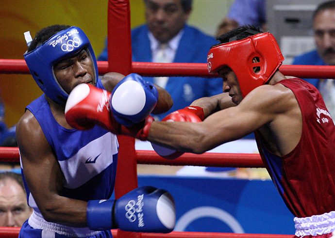 多米尼加選手費(fèi)利克斯·迪亞斯(左)在北京奧運(yùn)會(huì)拳擊64公斤級(jí)決賽中戰(zhàn)勝泰國(guó)選手瑪努·汶尊儂,獲得冠軍。