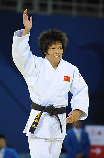 中國運動員冼東妹衛(wèi)冕女子柔道52公斤級冠軍。