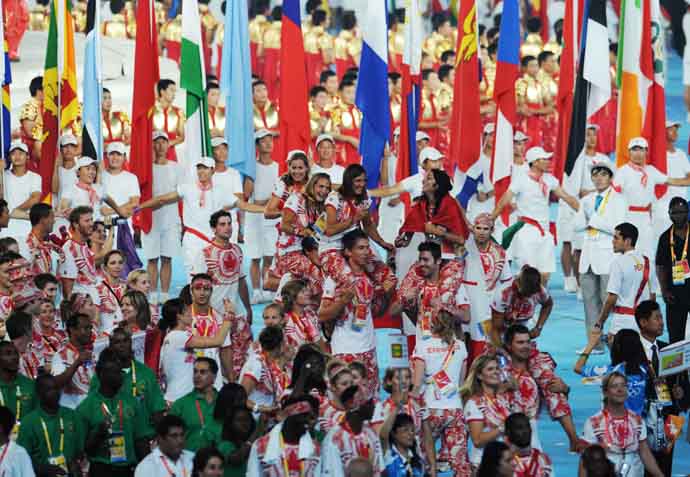 各代表團成員在閉幕式現(xiàn)場慶祝。